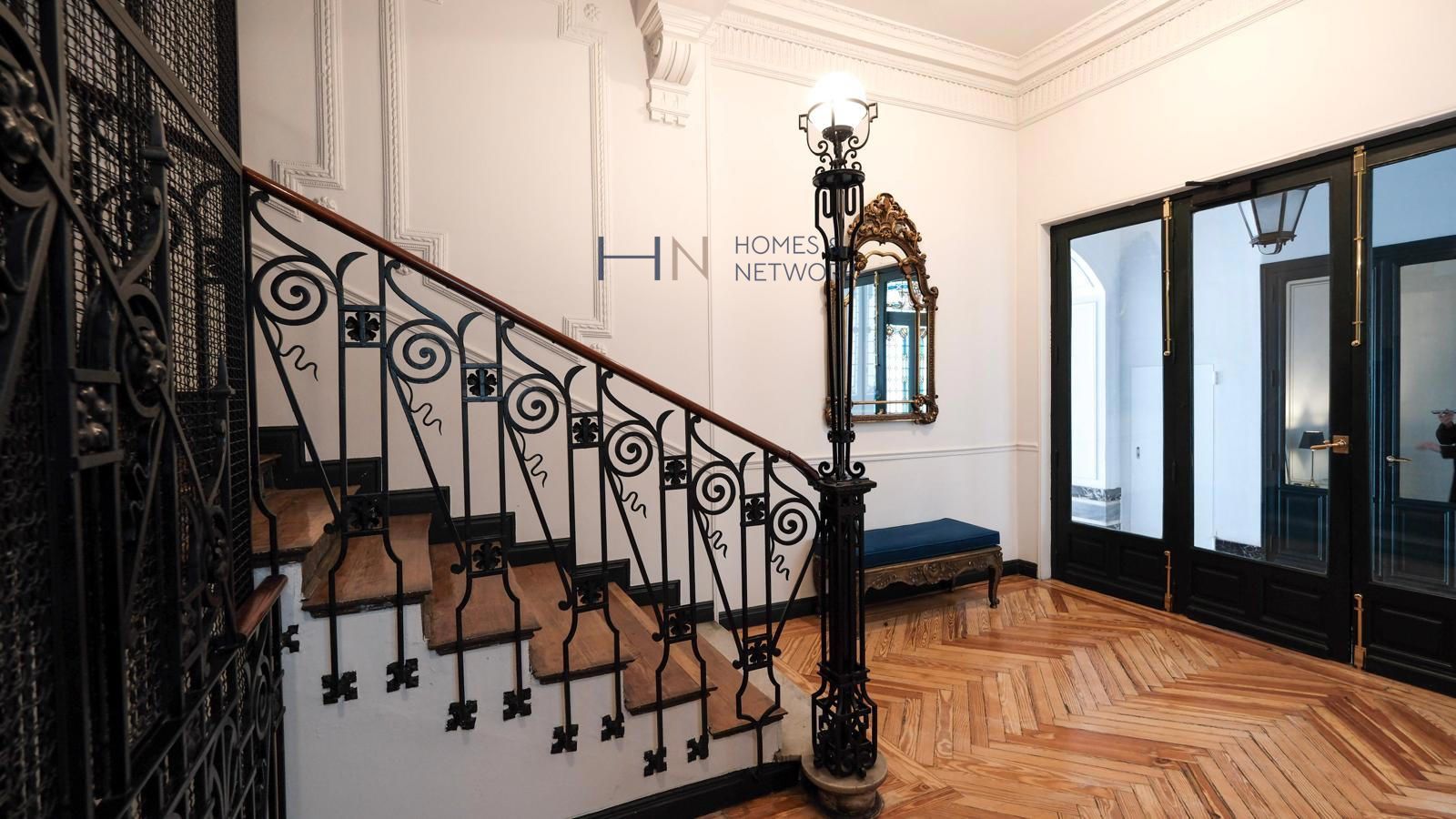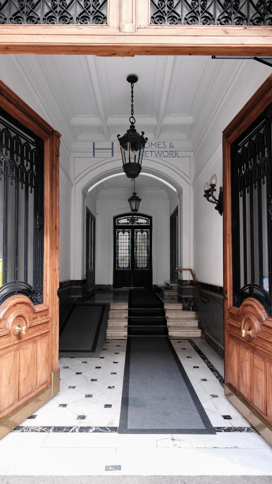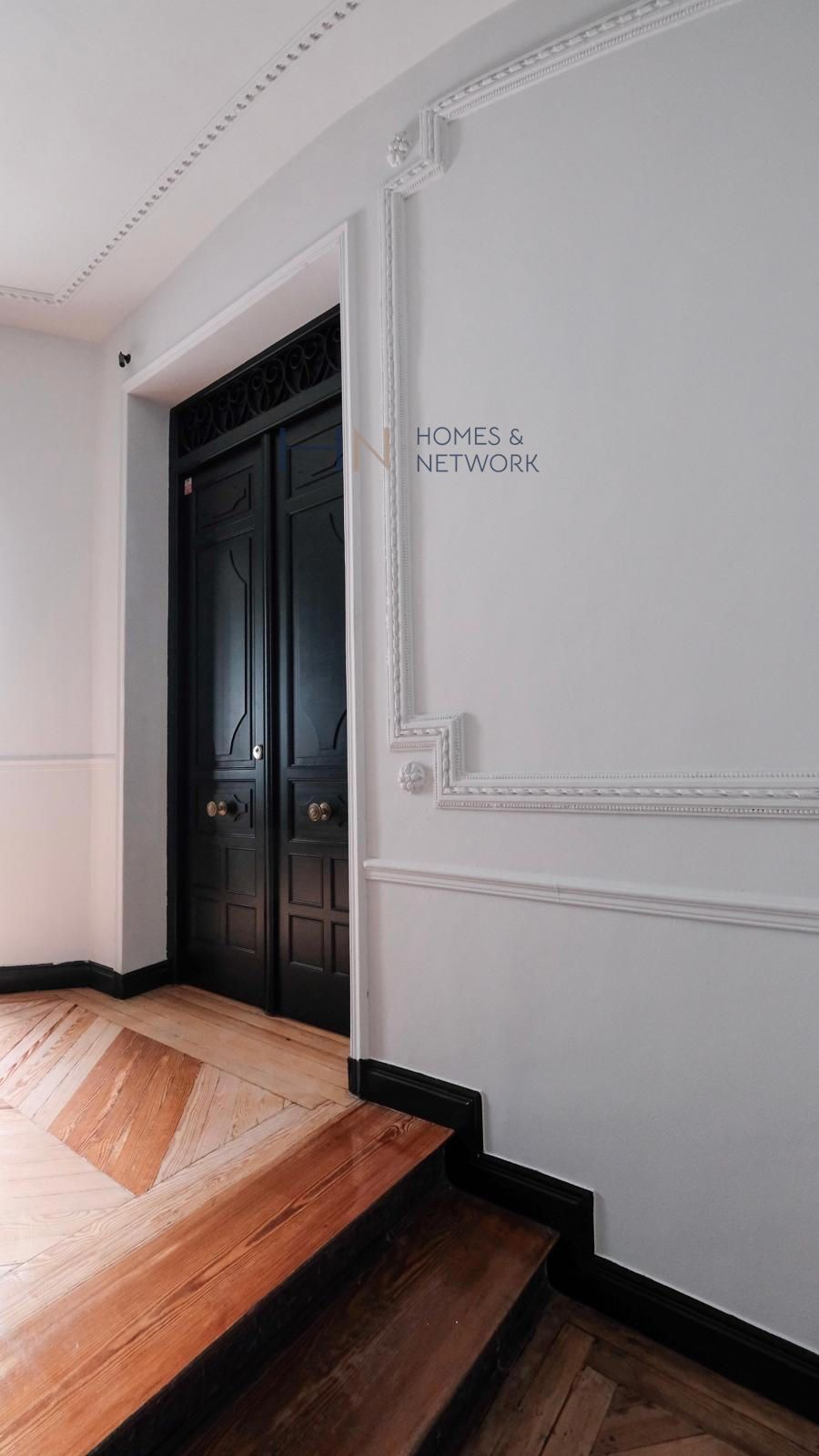 Vivienda en una finca clásica de 1920 con paso de carruajes, ascensor de jaula y un precioso patio interior. La vivienda se encuentra en una 4ª planta muy luminosa y dispone de 350 m² útiles de vivienda, con techos de 3,50 m de altura (con los originales con molduras conservados sobre el falso techo actual), 7 balcones y un mirador.