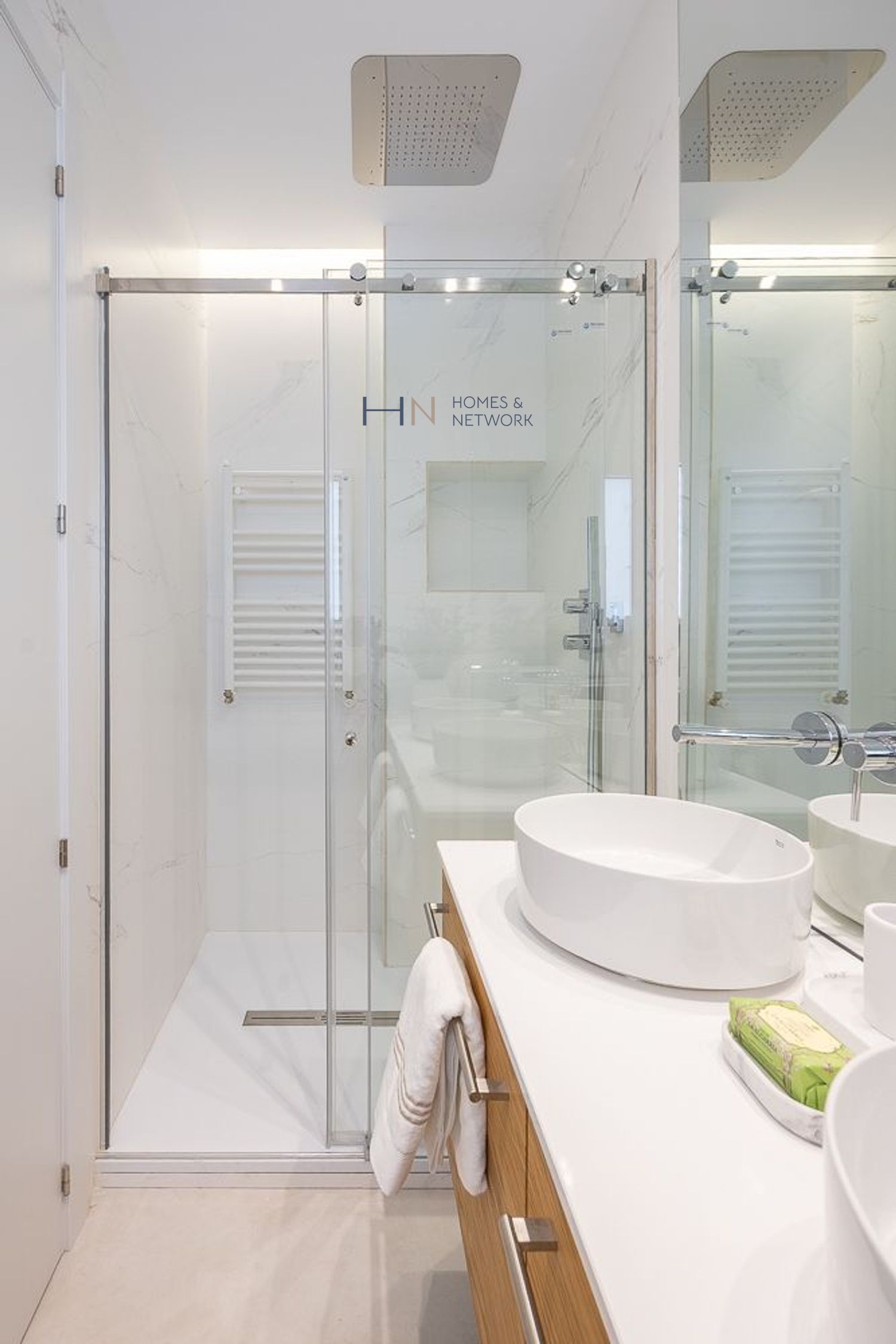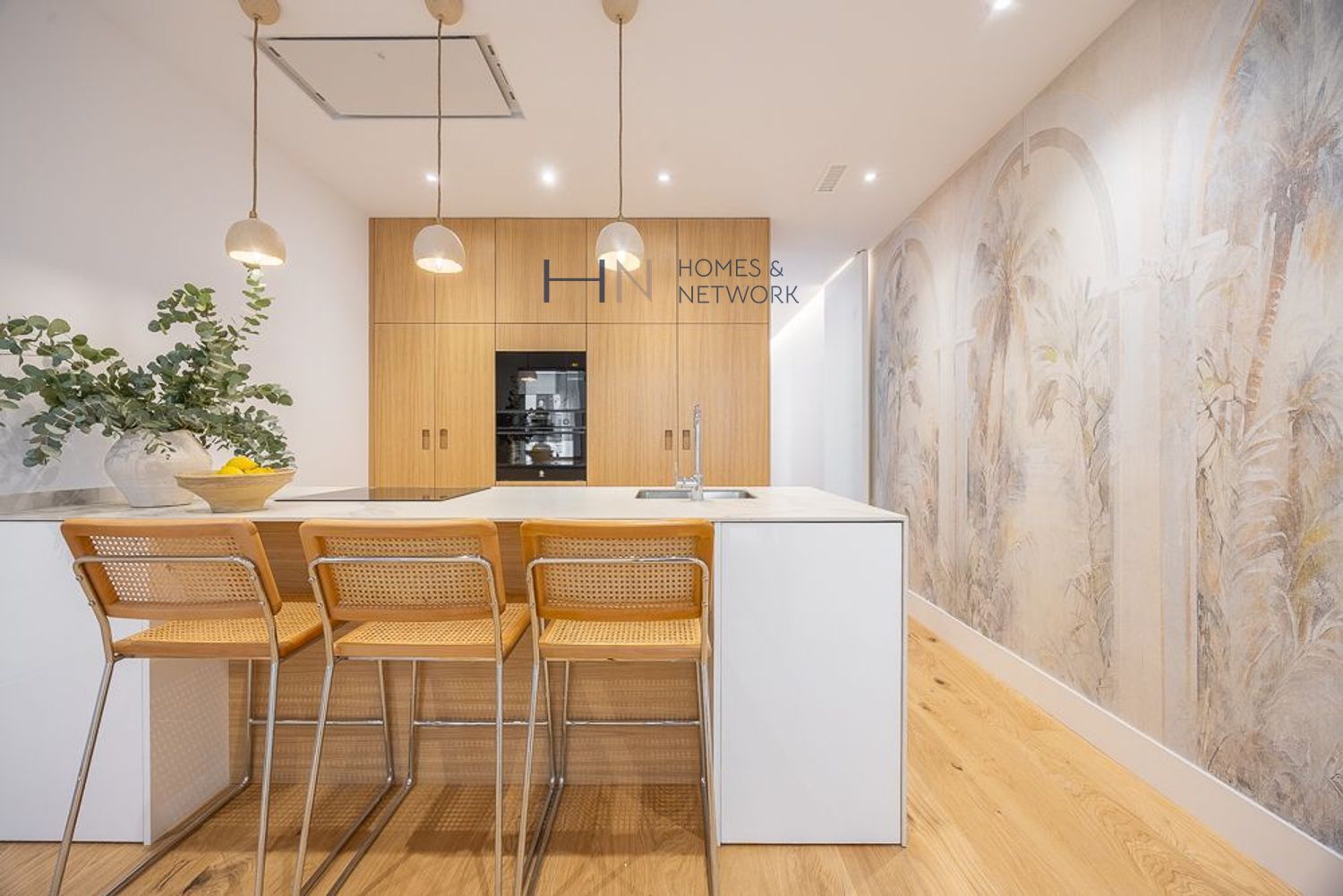 114 m2 útiles distribuidos en un acogedor recibidor con baño completo, amplio salón-comedor en dos ambientes, cocina, completamente equipada con una gran isla y electrodomésticos de alta gama, tres dormitorios dobles (el principal en suite), todos ellos con amplios armarios empotrados y techos altos, y otro baño completo que comparten 2 de los dormitorios.
